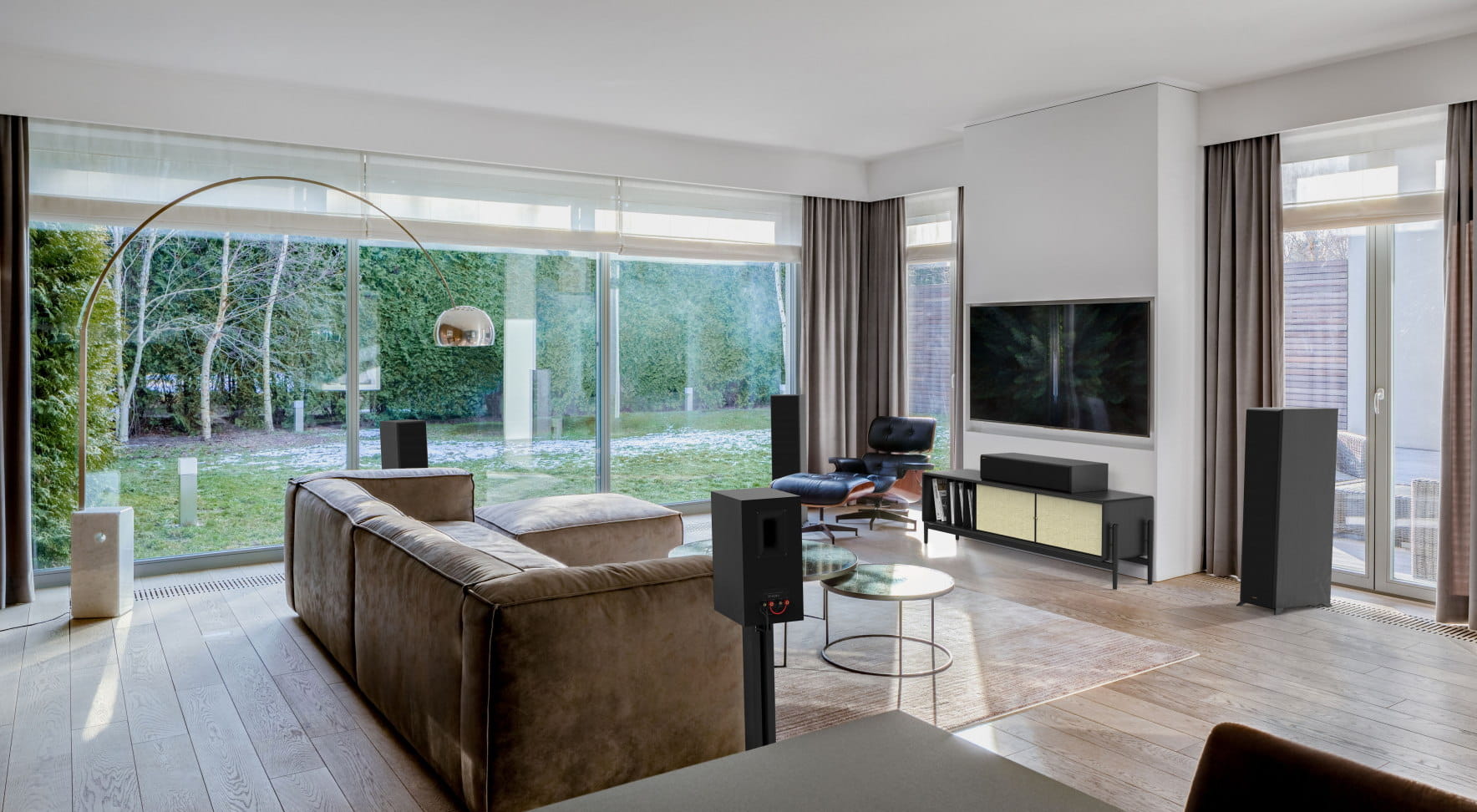 Rozbudowa systemu o Dolby Atmos jest niezwykle łatwa dzięki niewidocznym połączeniom umieszczonym z tyłu głośników. Te dopracowane połączenia zmniejszają ilość odsłoniętych kabli i utrzymują je na miejscu, zapewniając lepsze zarządzanie przewodami.