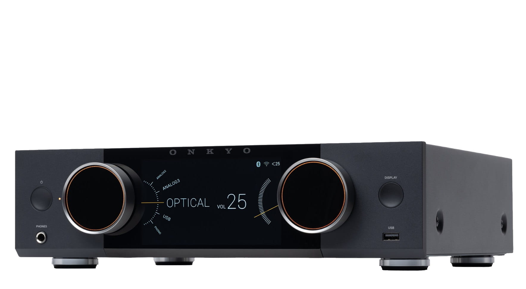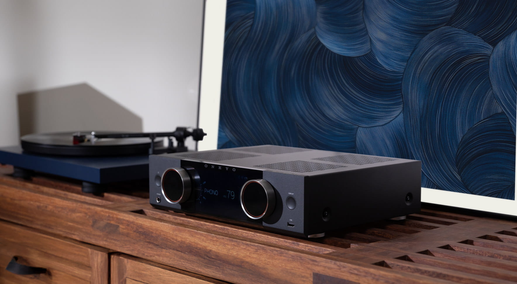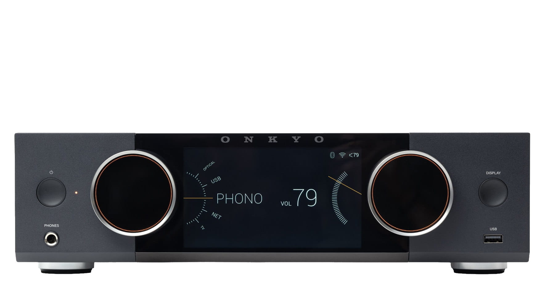Seria Muse zachwyca kompaktową konstrukcją, która bez trudu odnajdzie się w każdym domowym wnętrzu. Kolorowy wyświetlacz LCD o przekątnej 5,46 cala prezentuje najważniejsze informacje — od danych o aktualnie odtwarzanym utworze po stylizowany, analogowy wskaźnik VU. W połączeniu z intuicyjnym interfejsem znacząco ułatwia konfigurację urządzenia. Seria Muse współpracuje również z aplikacją Onkyo Controller, dzięki czemu możesz wygodnie włączać i wyłączać urządzenie oraz regulować ustawienia — tak samo, jak w przypadku innych produktów Onkyo.