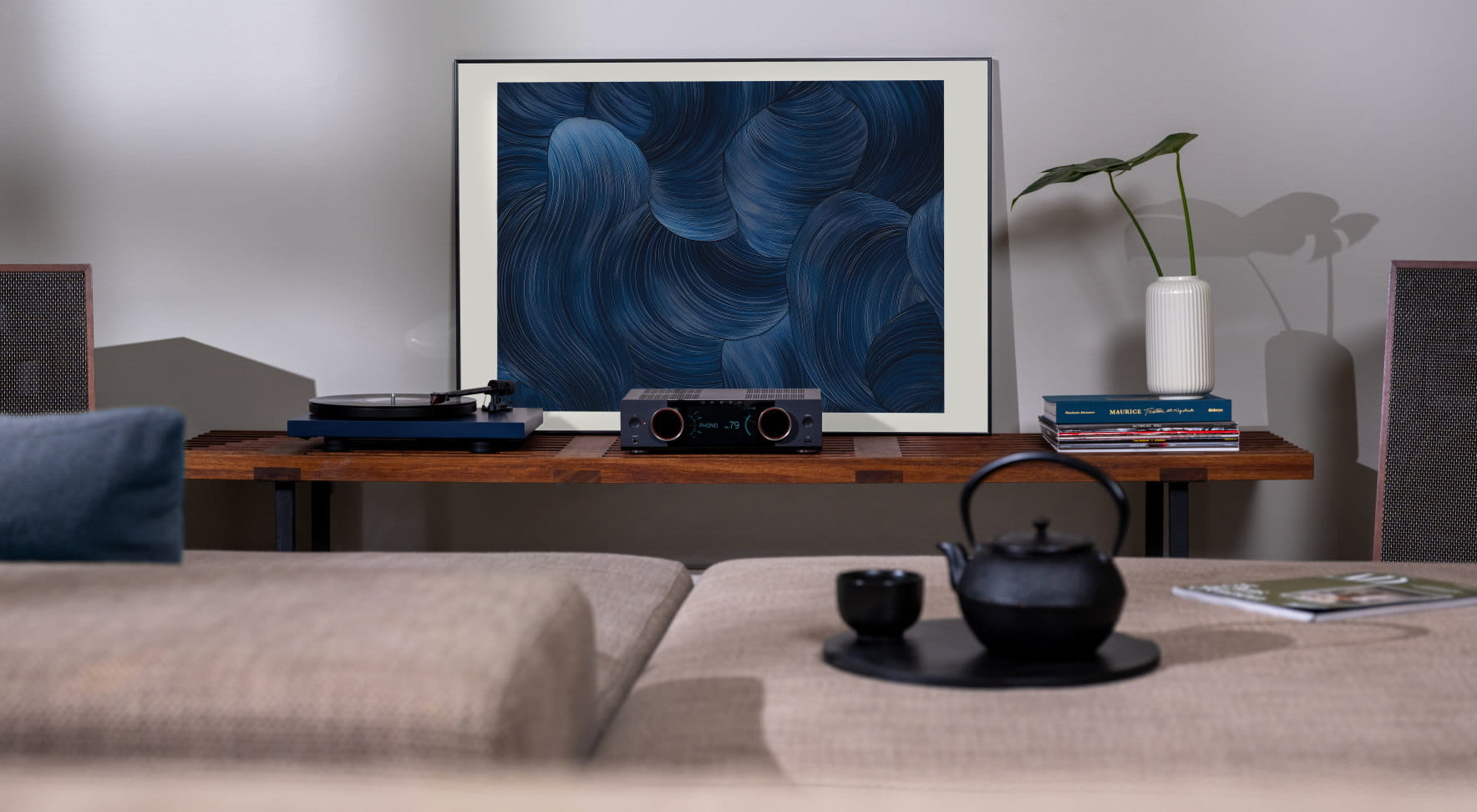 Model Y‑50 oferuje praktycznie komplet złącz niezbędnych do stworzenia pełnego, zaawansowanego systemu audio. Do dyspozycji masz trzy pary analogowych wejść RCA, wejście koaksjalne, wejście phono, wejście HDMI, HDMI ARC, a także wyjście HDMI. Obsługa zarówno Ethernetu, jak i Wi‑Fi otwiera drogę do nowoczesnego streamingu. Połączenia HDMI przenoszą obraz i dźwięk, dzięki czemu Y‑50 współpracuje również z konsolami do gier i innymi urządzeniami pozbawionymi HDMI ARC. Urządzenie wyposażono także w autorski system kalibracji pomieszczenia opracowany specjalnie dla serii Muse — analizuje on akustykę Twojego wnętrza i precyzyjnie dostosowuje charakterystykę brzmienia, aby zapewnić idealne wrażenia odsłuchowe.