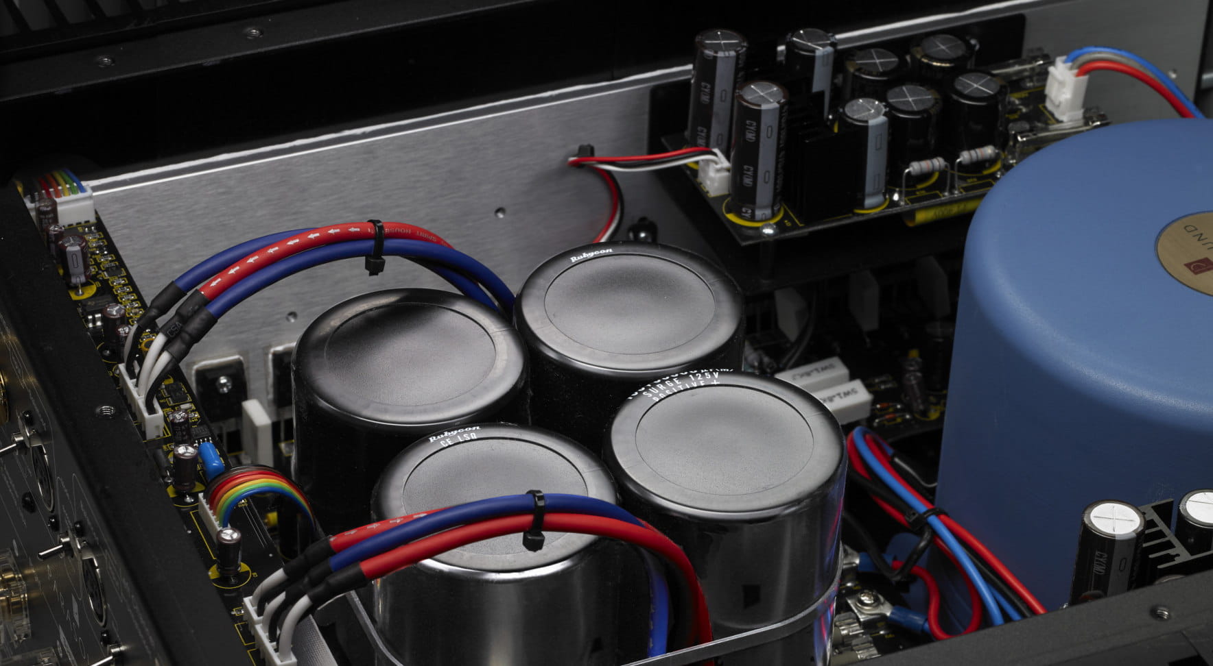 - Kondensatory filtrujące 132 000 µF Rubycon dla stopni wyjściowych